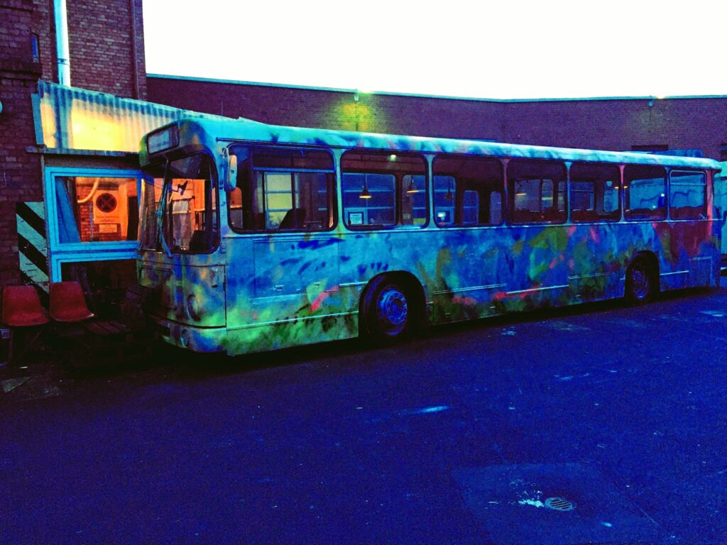 私が特に気に入ったのが、近所のWeddingエリアで見つけたユニークなカフェ。なんとここ、バスを改装して客席にしてました。 古いバスの中でコーヒーを啜っていると、なんだかタイムスリップしたような、秘密基地にいるような不思議な感覚になる。 こんな自由な発想が許されるのも、ベルリンという街の懐の深さかもしれない。