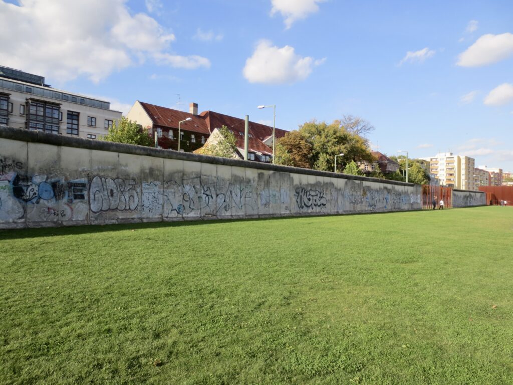 観光地化されたイーストサイドギャラリーとは違い、当時の壁が残っています。 錆びた鉄の棒が並ぶモニュメントや、当時のまま保存された監視塔。 こんな壁がベルリンの周りを囲っていたと思うとゾッとします。私は勘違いしていたのですが、西ドイツ側の周りを壁で囲っていたわけです。なので西ベルリンに住んでいた人たちが壁の中で生活をしていたということになります。