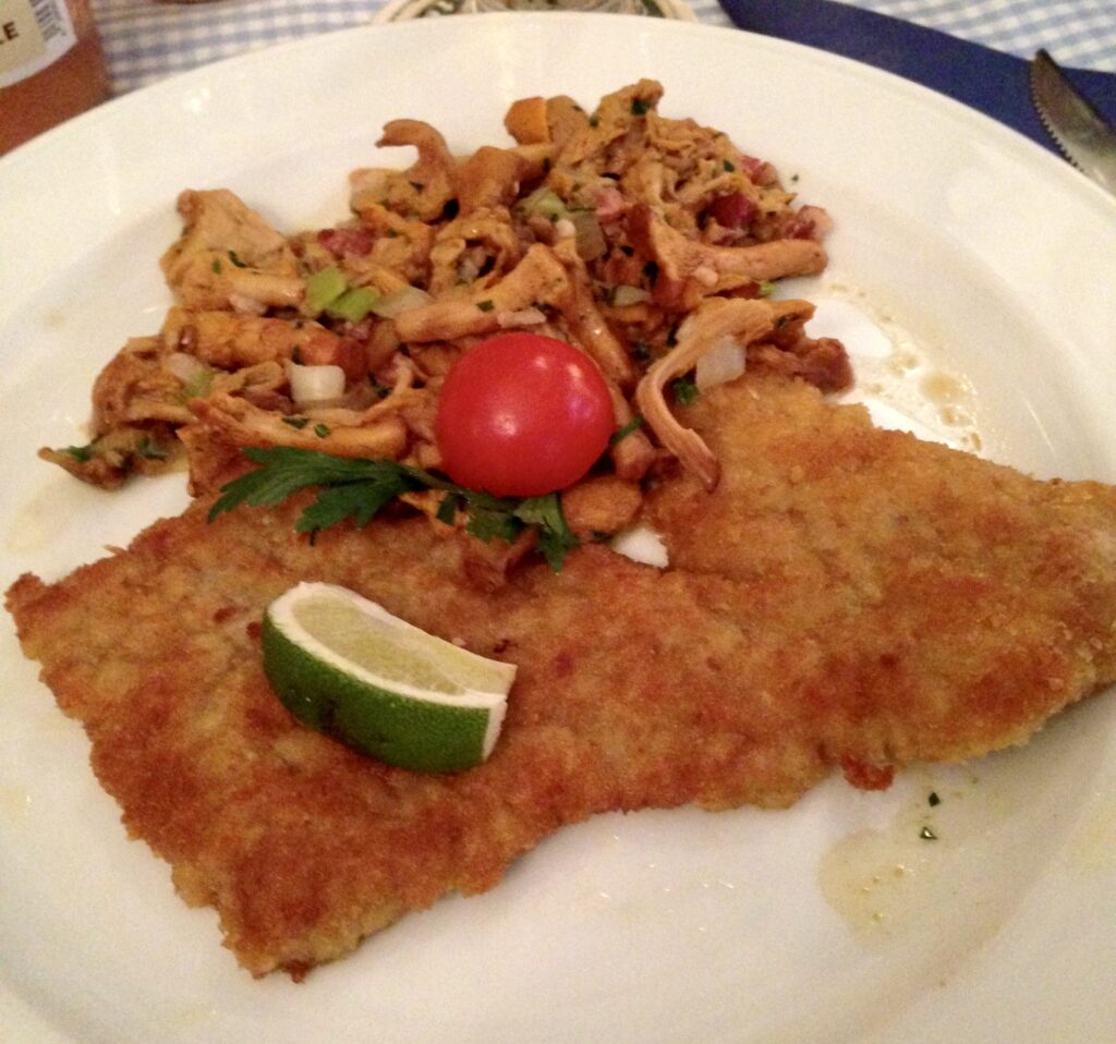 たくさん歩いて歴史を堪能した後は、お待ちかねのドイツ料理! 写真は、巨大なカツレツ「シュニッツェル(Schnitzel)」と、塩漬け豚肉の燻製「カスラー(Kassler)」。どちらも肉の旨みがガツンと来て、これぞドイツ!という満足感。