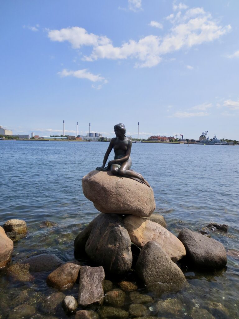 そしてあの有名な「人魚姫の像(The Little Mermaid)」へ。 「世界三大がっかり」なんて不名誉な呼び名もあるけれど、実際に見てみると……うん、確かに小さい。 でも、背景に広がる青い海と空が美しく、そんなに悪くないと思いますが。