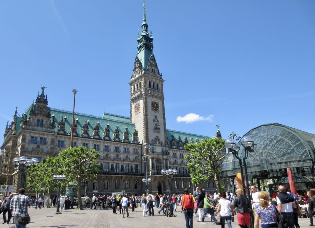 目の前に現れたのは、ハンブルク市庁舎(Hamburger Rathaus)。 緑青の屋根と、精密な彫刻で飾られたファサードは、まるで王宮のよう。 実はハンブルクは、歴史的に「自由ハンザ都市」として独立を守ってきたため、王様がいません。 この豪華な市庁舎は、王様ではなく「市民(商人たち)の力と富」で建てられたもの。 港で稼いだ富がいかに莫大だったか、この建物を見るだけで分かります。