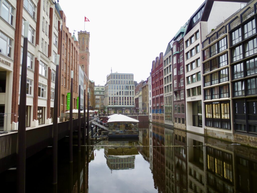 ここは高級ブランド店が並ぶ「ノイアー・ヴァル」周辺。倉庫街とはまた違う、洗練された「水の都」の表情です。