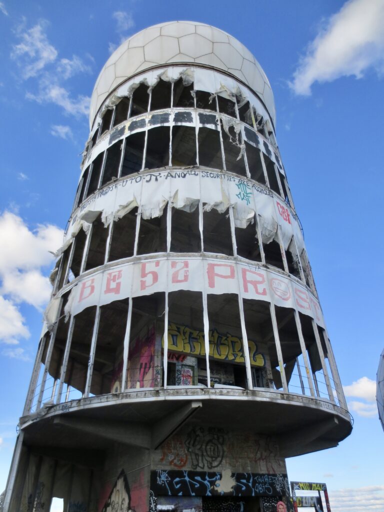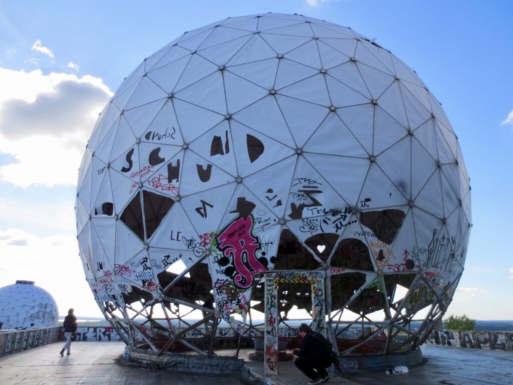 森の中にある小高い丘「悪魔の山(Teufelsberg)」を登りきると、突如として異様な白いドーム群が現れる。 かつての 米国NSA(国家安全保障局)の盗聴ステーション跡地 。