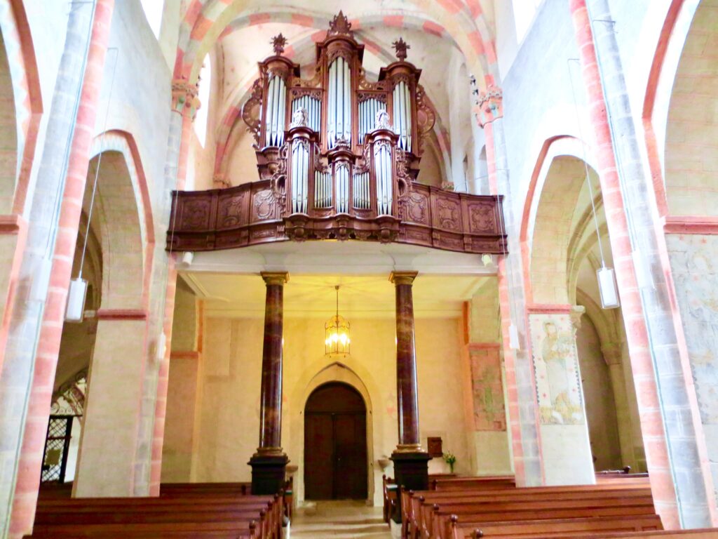 オルガンや祭壇は素朴なのに力強く、中世から続く祈りの空気が感じられます。