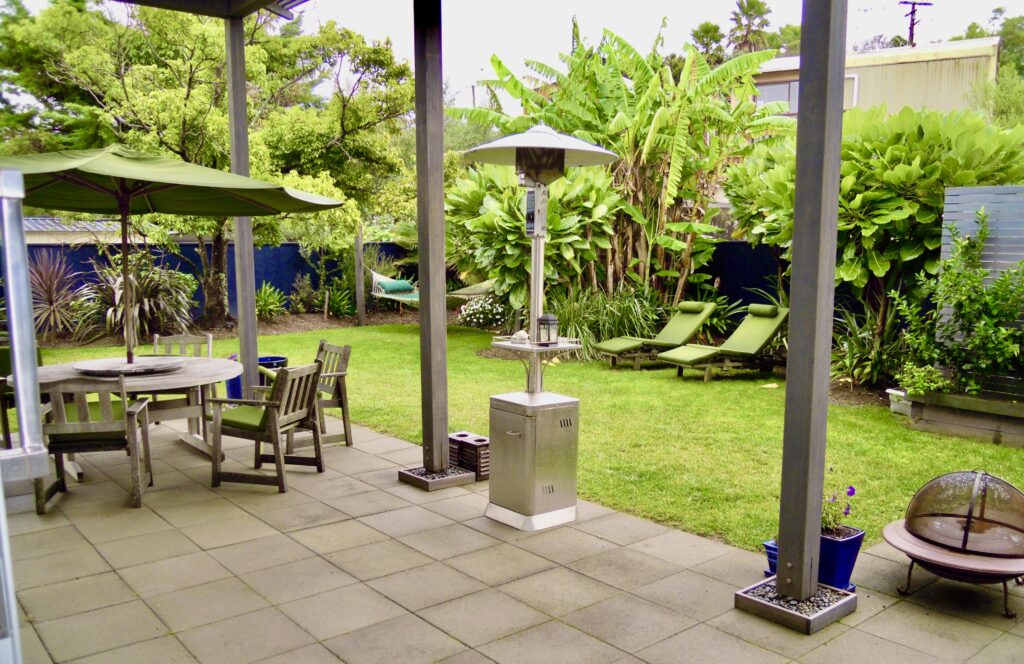 島に着いてお腹が空いていたので、まずMudbrick Vineyardへ直行。到着すると、美しく手入れされたガーデンが出迎えてくれます。雨に濡れた緑が一層鮮やかで、曇り空でも絵になる場所でした。