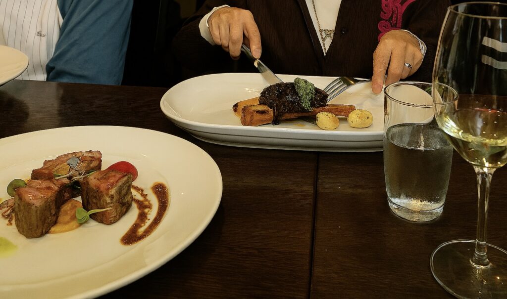 夜は別のワイナリー、Cable Bayへ。大きな窓の向こうに海が広がる、洗練されたレストランです。ステーキとラムはどちらも極上の味で、ワイヘキ島の赤ワインとの相性が抜群でした。家族でグラスを傾けながらゆっくり食事をする時間は、この旅の中でも特別に幸せな時間でした。旅の疲れも、雨の天気も、すべてがどこかへ行ってしまったような夜でした。